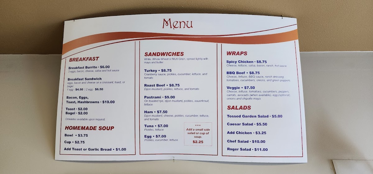 - Breakfast: Try the Breakfast Sandwich for a quick bite or opt for the classic Bacon, Eggs, Toast, and Hashbrowns to fuel your day.